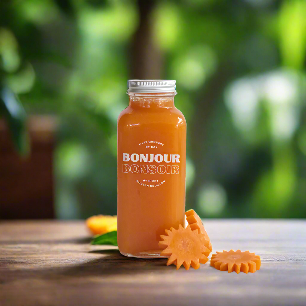 Blend of orange juice, carrot, and apple, rich in vitamins for a fresh Skin and healthy glow.